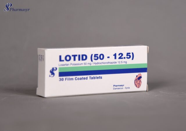 التركيب كل مضغوطة تحتوي على: لوزارتان بوتاسيوم 50 ملغ + هيدروكلوروثيازايد 12,5 ملغ