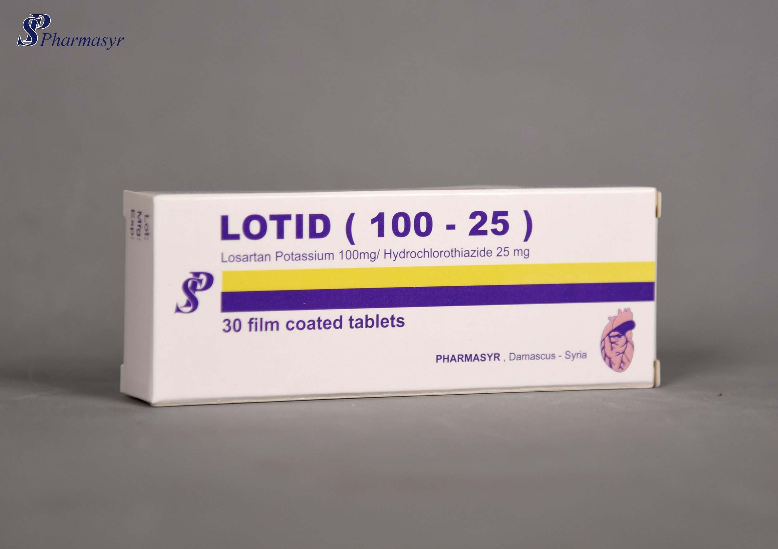 كل مضغوطة تحتوي على: لوزارتان بوتاسيوم 100 ملغ + هيدروكلوروثيازايد 25 ملغ